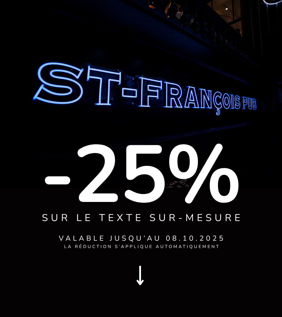 Choisissez votre texte, couleur, police et taille. Votre néon, votre style.