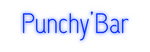 Logo néon violet « Histoire Sans Faim » sur mur décoratif coloré de restaurant